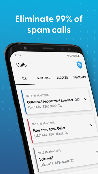 Lo que autentifica el servicio genuino de esta aplicación de bloqueo de llamadas es el fiable e impresionante algoritmo de bloqueo de llamadas, así como la tecnología de bloqueo de números de huellas dactilares que ofrece. Con esto, podrás impedir que suenen más de 1,1 millones de telemarketers y robocalls, incluso cuando estén suplantando o cambiando continuamente sus números. Además, no sólo termina con el bloqueo, ya que también podrás tomarte tu dulce venganza con el uso de la función Answer Bots, grabaciones salientes muy divertidas que responden al teléfono por ti.